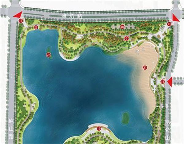 公园位于潍坊路以南、庐山路以东、烟台路以北、昆仑山路以西,占地约600亩。泮,古代学宫前的水池,形如半月。根据查证,泮宫为古代诸侯举行宴会或作为学宫的宫殿,后来逐渐成为学校的代名词,读书人考中秀才被称作“入泮”“游泮”。公园内的一闲置水库位于油田一中附近,水草丰茂,犹如古代学宫前的水池,见证莘莘学子在这里奋发苦读,目送优秀人才从这里走向高等学府,所以将公园命名为泮水公园。公园以现状水域生态修复为基础,同步建设健身慢行环路、亲水平台、阳光草坪、儿童乐园等功能节点,打造集生态防护、科普教育、游憩休闲、社区人文于一体的综合性城市公园。项目计划2023年6月底建设完成。