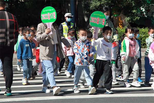 在实验小学东侧的胶州路与运河路路口,放学后的学生们先由老师带队沿学校门口步行道到胶州运河路口,在护学岗交警的指挥下走过斑马线,再交到马路对面的家长和志愿者手中。根据长期的执勤经验,建立了“交警牵头,学校主导,家长参与,社会支持”的四位一体责任体系。