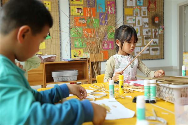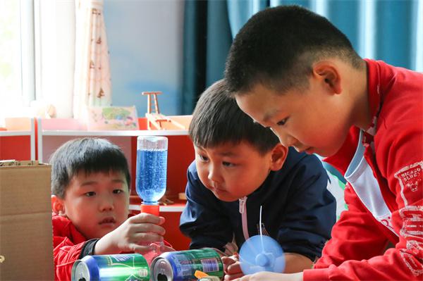“咱们把这个玉米皮贴在下面,这不就变成小裙子了么,你看多好看啊!”近日,在付窝幼儿园里,幼儿园教师、黄河口草秸画传承者王玉燕正带着孩子们进行草秸画创作。付窝幼儿园以“自由身心、快乐成长”为培养目标,把“充分挖掘农村优势、办农村特色幼儿园”作为发展方向。本着就地取材、变废为宝的原则,充分挖掘利用身边的玉米皮、茅草、蒲草、芦苇、麦秆等乡土资源,运用到户外活动、室内外环境创设、区域游戏活动中,开创了独具特色的教育活动。