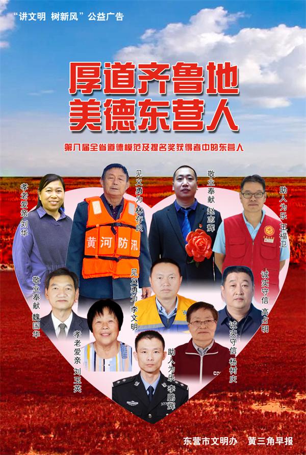 近年来,东营市始终把加强市民思想道德建设、提高市民文明素质作为文明城市常态、长效建设的根本任务,坚持以文化人、以德育人,注重模范引领、榜样带动,让道德之花在东营大地处处盛开。东营也因此涌现了一大批道德榜样,他们或充满爱心、助人为乐,或见义勇为、舍生忘死,或诚实守信、坚守正道,或敬业奉献、虔诚勤勉,或孝老爱亲、血脉情深;他们以平凡中的伟大、平常里的崇高温暖人心、感动社会,树立了榜样,筑起了我们这座城市的精神高地。