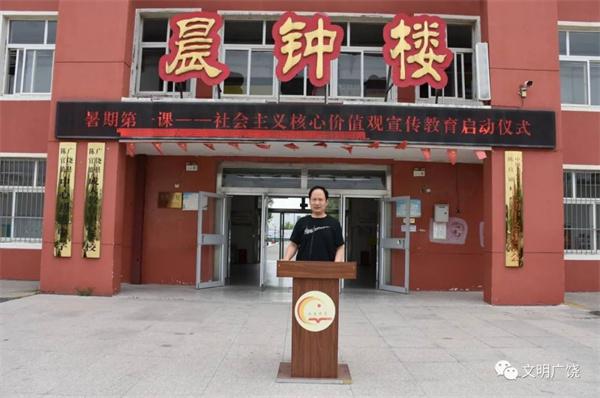 广饶县紧紧抓住乡村“复兴少年宫”全省试点机遇,强化顶层设计、优化资源配置、科学课程设置,扎实推进暑期乡村“复兴少年宫”活动开展。暑假前夕,全县广泛开展乡村“复兴少年宫”暑期第一课——社会主义核心价值观宣传教育活动。