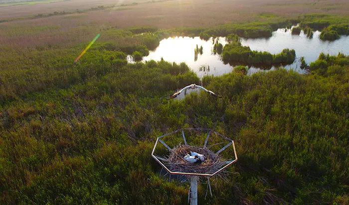 黄河三角洲国家级自然保护区人工巢。新华网发(杨斌 摄)