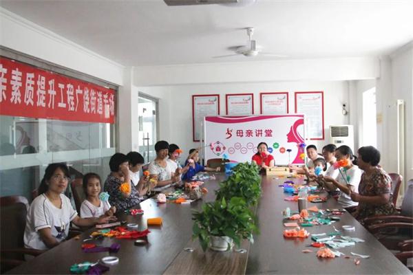 打造一个基地,发挥辐射效应。围绕“家校融通、共育共进”的思路,建立健全学校、家庭、社会“三结合”教育网络,依托家长学校、未成年活动室、图书阅览室等阵地,积极打造了“德润园”家长学校品牌;开展法律知识进社区、社会公德等主题的知识讲座;依托家长学校开展妇女儿童维权、书香润童心、亲子手工DIY、绘本阅读等主题课程。