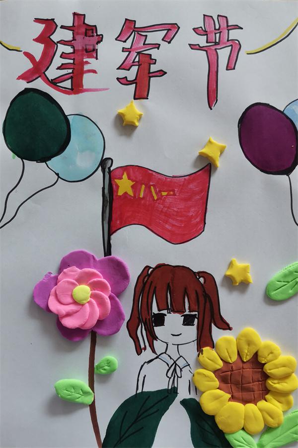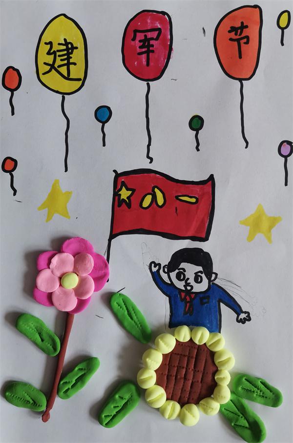 结合“八一”建军节活动,老师让孩子们用橡皮泥和彩笔做手工。在听老师讲解完注意事项后,孩子们迫不及待的拿起画笔开始忙碌起来,认真地打草稿、描边、上色,用缤纷的色彩,描绘出自己心中的解放军叔叔的形象,一幅幅色彩绚丽的“最可爱的人”作品很快就绘制完成了。孩子们不仅提高了动手动脑能力,也让他们感受到作为军人的使命与责任感。
