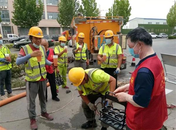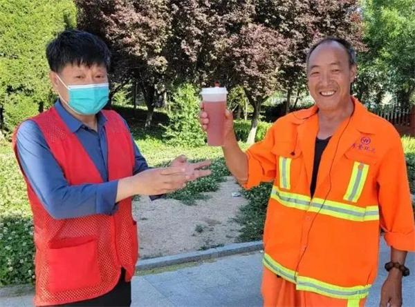 炎炎夏日送清凉,锦辉社区开展“关爱环卫工人,靓汤暖心”志愿活动。对辖区周边在炎炎烈日下辛勤工作的环卫工以及其他户外工作人员送上防暑降温慰问品,嘱咐他们高温天气注意身体。当志愿者将一杯杯绿豆汤送给坚持在一线的环卫工和核酸检测点、户外施工人员手中时,他们连声称谢,真切感受到一份关心。