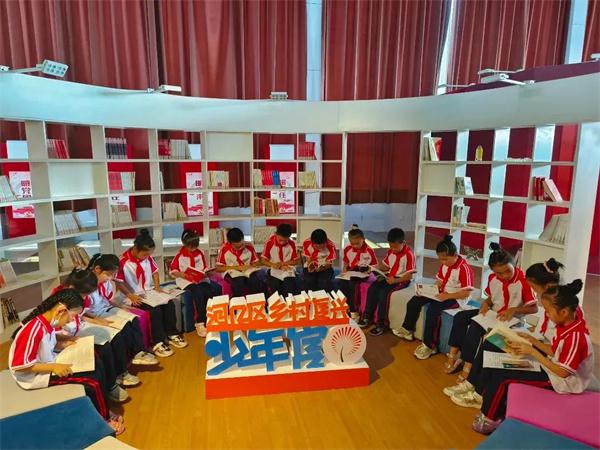 红领巾讲解员在河口区图书馆为少先队员志愿讲解