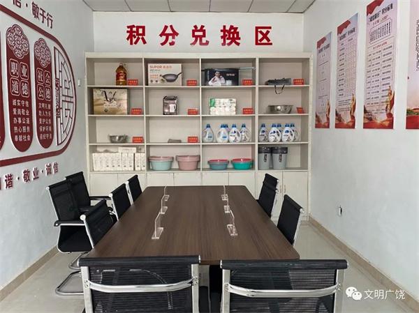 广饶县花官镇新时代文明实践所坚持以习近平论乡村振兴思想为指导,重视农民思想道德教育,健全乡村治理体系,深化村民自治实践,培育文明乡风、良好家风、淳朴民风。花官镇在张铺村新时代文明实践站试点建设运行了“农民诚信银行”品牌项目。该项目以公民道德诚信体系为载体,导入银行管理理念,成立积分评定领导小组,围绕律已守法、移风易俗、清洁卫生、创业创富、敬老爱亲五个方面内容,根据实际,制定量化细化村民道德标准和具体行为评分细则。由志愿者组成积分评定领导小组,对每个家庭每季度的积分进行评判、汇总并公示,超出道德基础分的积分,可到村“诚信银行”兑换相应的生产生活用品。