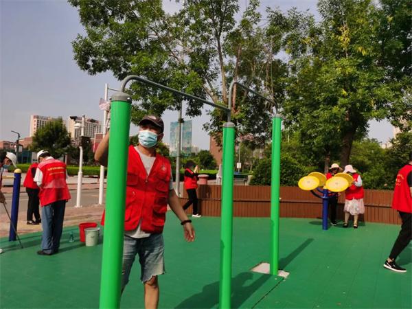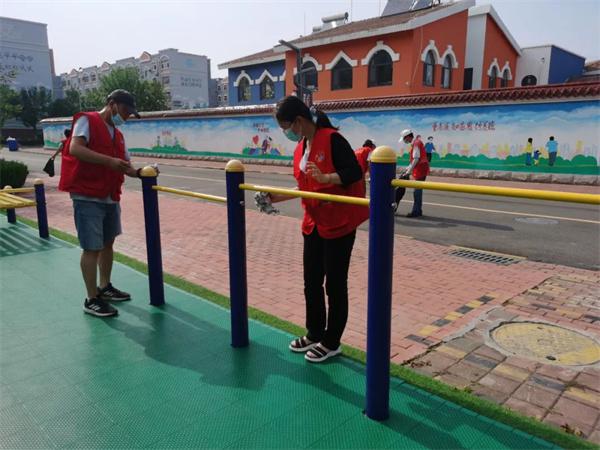 锦华社区联合共建单位开展“清洁社区健身器材,争当创城环保卫士”志愿服务活动。志愿者们一手提水桶,一手拿抹布、扫帚、螺丝刀等工具,对社区公共座椅、健身器材等公共设施进行擦拭,仔细检查健身器材螺丝是否松动并进行维修,清扫健身场所周边的垃圾。