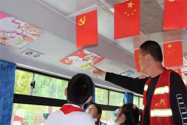 今年以来,东营区创新开展“红色宣讲进校车”活动。通过前期充分挖掘校车车厢空间资源,由司机、随车照管员和同乘车学生一起动手完成了车厢文化的设计、制作和张贴,在车厢内展示了以系列“伟大精神”、童心向党等内容为主题的车厢文化创设。随着党史教育、红色教育等知识相继走进校车车厢,书法、绘画、剪折纸等学生红色作品也使校车车厢变成了展示乘车学生才艺特长的舞台,各具特色的校车车厢被打造成学生喜闻乐见的流动“第二红色课堂”,在发挥环境育人的同时,更有效激发了“红色流动课堂”品牌形象初步形成。在活动中,通过小小红色宣讲员利用校车发车前的时间,声情并茂地为同学们讲述红色故事、系列“伟大精神”等内容。与此同时,在校车的行驶途中,借助车内广播播放红色歌曲,让车厢内的红色文化氛围更加浓厚。