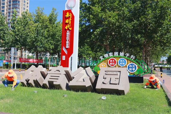 在居民小区,摆放共享单车、张贴海报、捡拾垃圾,协助整改社区内花砖、井盖、路面;在公园广场、景区景点,耐心劝导乱丢垃圾等不文明现象,整治周边环境卫生、车辆乱停乱放……今年,东营区公用事业集团公司对旗下市政、环卫、物业、文旅等业务版块进行整体谋划,公司主要负责人、分管负责人不定时、不定点加强督导检查,全力保障创城测评“时时达标、事事达标、处处达标。”截至目前,该公司到包靠社区开展志愿活动35场次,出动志愿者285人次,在公园广场、景区景点开展文明引导志愿服务,出动文明引导员30人次。