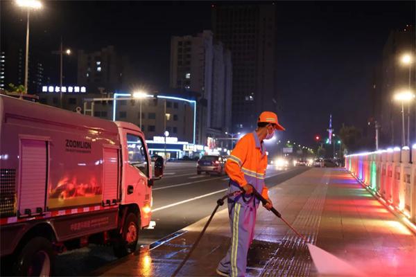 东营区市政控股集团油城环卫公司针对城区公共环境卫生,从平时和细微处入手,加强精细化保洁力度。近期共出动深度保洁车335余车次,清理空场建筑垃圾约3135余立方米。抢修专班24小时对城市公共设施进行维修更换,维修督办单126件,整改工地围挡49处,对管养的20个公园广场公共设施、景观小品等整改维修33处,更换井盖46处,修复路面17处共计897平方米,修补人行道花砖26处共计173平方米,修整路沿石等其它问题53处。