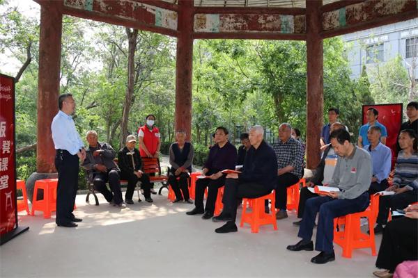 依托原胜利油田建设的公园、广场,在河丰小区、河辉小区精心打造了“初心”文化阵地,建设了初心亭、初心文化广场和初心长廊,开设“板凳课堂”。以“永远跟党走”为主题,组织开展形式多样、 内容丰富的党史活动,让党员群众在家门口就能聆听生动的党课。成立以年轻社区居民为主的阳光志愿服务队,推进党员联动、社工联勤、志愿联盟三联融合,共同开展治安巡逻、政策宣讲、矛盾调解、爱心护学等志愿服务活动。同时也积极引导油田离退休老党员参与到“红色宣讲轻骑兵”志愿者中来,充分发挥老党员的带头作用,激发了油田退休老党员参与党史学习教育的积极性,也推动党的理论政策“飞入寻常百姓家”。