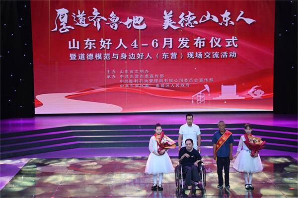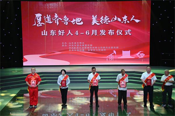 6月29日,“厚道齐鲁地 美德山东人”4-6月“山东好人”发布仪式暨道德模范与身边好人现场交流活动在东营举行。本次活动由山东省文明办主办,中共东营市委宣传部、胜利石油管理局有限公司党委宣传部、中共东营区委、东营区人民政府承办。