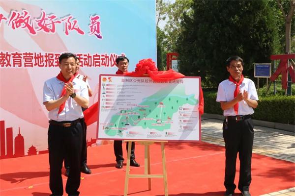在垦利区“向少先队校外实践教育营地报到”活动启动仪式上,红领巾讲解员们生动形象地为各校外实践教育营地“代言”。垦利区共建立了包含红色教育、法治教育、综合实践、科技创新等7大门类的少先队校外实践教育营地矩阵,精心设计学习打卡地图,建起一支素质高、覆盖广、热心少年儿童事业的校外辅导员队伍,培养了一批红领巾讲解员,有序推进“向校外实践教育营地报到”活动。