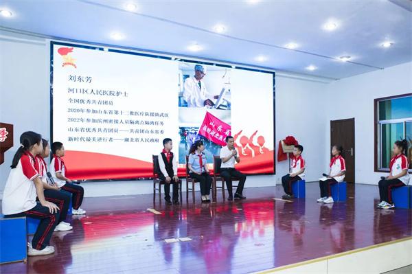 胜利第五十八中学少先队员走进全国“五一”劳动奖章获得者代旭升劳模创新工作室、河口区实验小学少先队员邀请全国优秀共青团员刘东芳做客队课直播间、东营区红领巾小记者寻访全国乡村振兴青年先锋赵龙,利津县陈庄镇薄家小学少先队员寻访山东省优秀共产党员王燕燕,一个个青春建功的榜样故事、一场场生动鲜活的寻访体验,激励着广大少先队员更加坚定听党话、跟党走的志向理想。