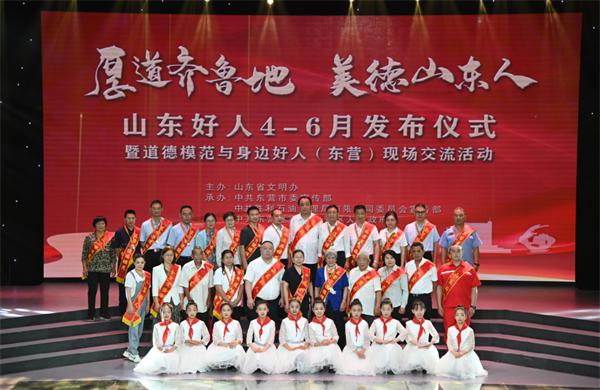 在东营市举办的“厚道齐鲁地 美德山东人”4-6月“山东好人”发布仪式中,让人们感受到身边有这么多的好人:诚信经营、热心公益和回馈社会的山东省“突出贡献企业家”王利民;八年如一日悉心照料瘫痪妻子的东营区王营村村民王余三;38年敬业耕耘、退休发挥余热的全国劳动模范、胜利油田退休员工杜全芳;空手夺刀护学生的胜利油田矿区物业服务中心员工姜琳……他们忠于职守、尽心工作,用爱心与责任筑起了东营这座城市的精神高地,让文明基因深入每个东营人心中。