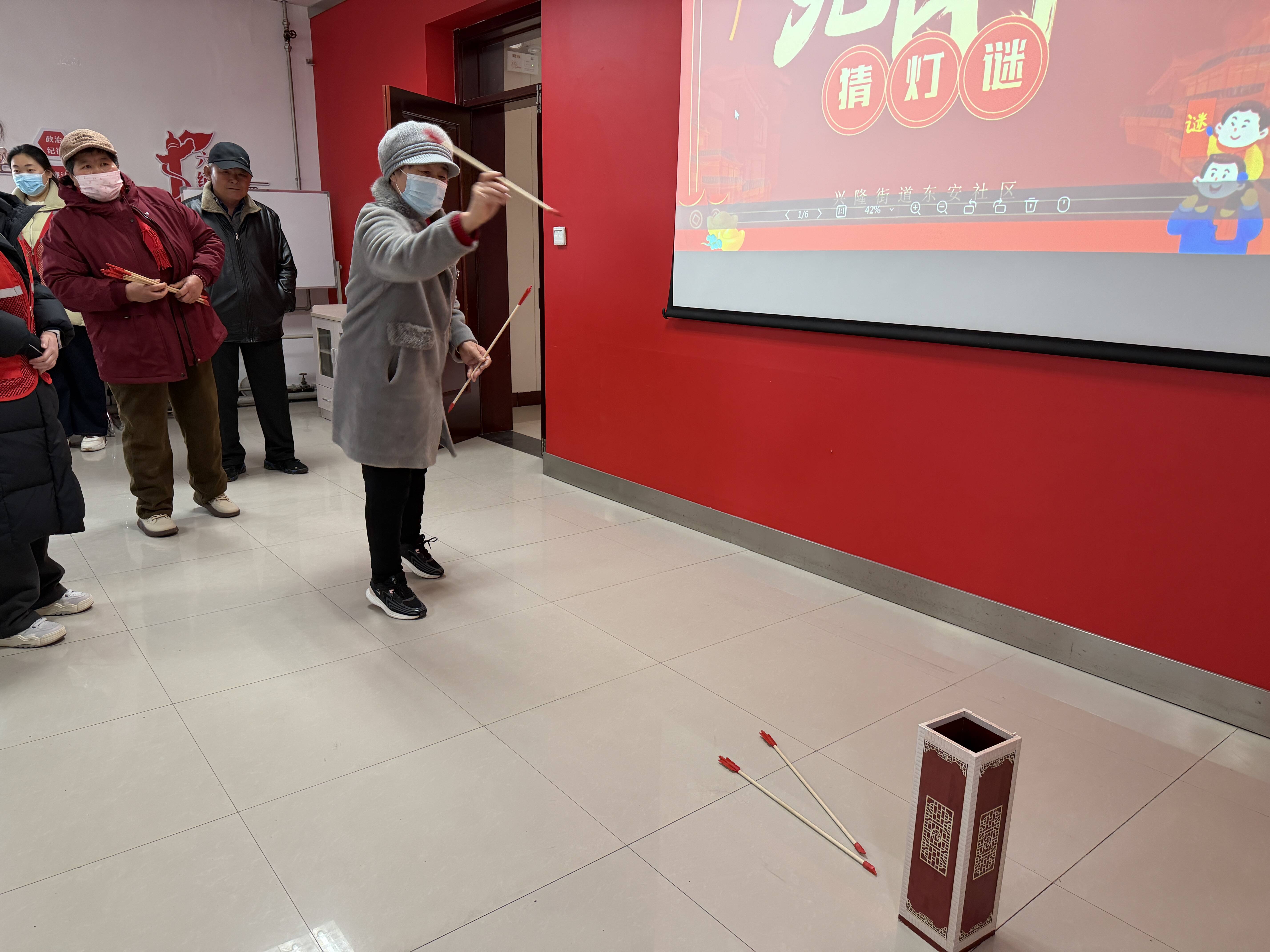 作为元宵节传统游戏之一,投壶体验区同样人气高涨。社区工作人员现场讲解投壶的历史渊源与规则,居民们手持箭矢,屏息凝神,瞄准壶口投掷,在欢声笑语中体验古人的雅趣。居民王大爷笑着说:“这个投壶看着简单,实际操作还真需要点技巧,太有意思了!”